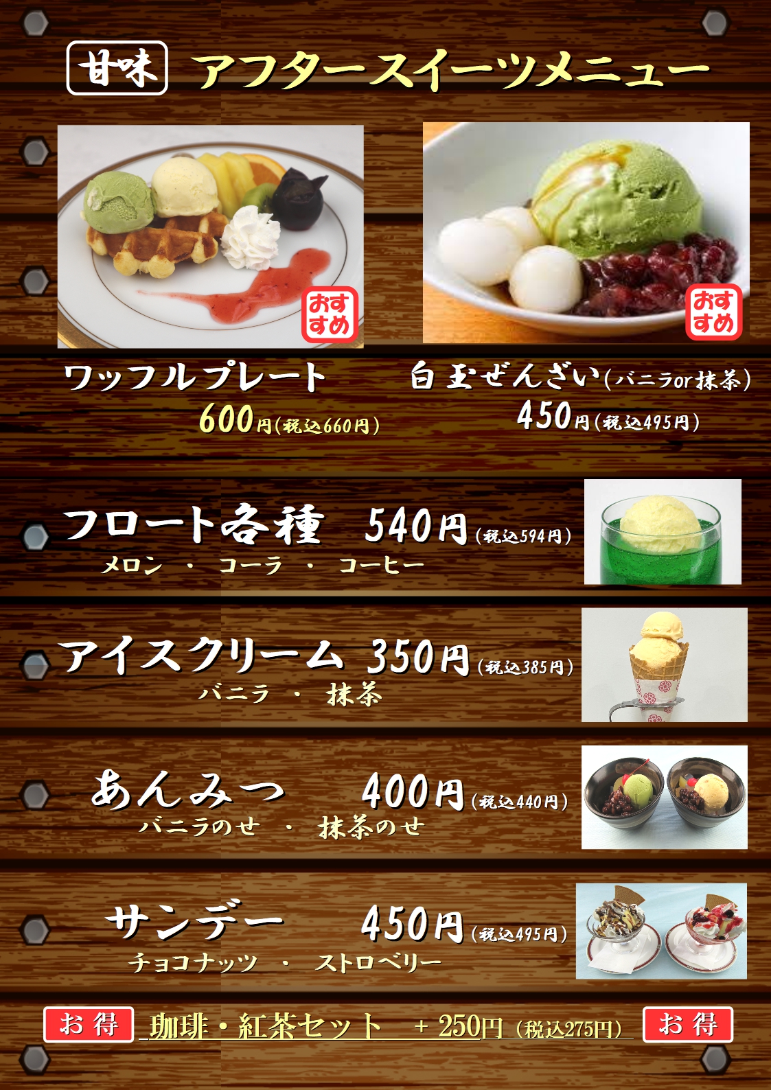 ※主菜は、サンドイッチ・焼きおにぎり・焼きそば等 (ご要望に応じます)